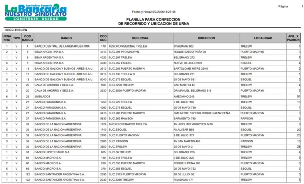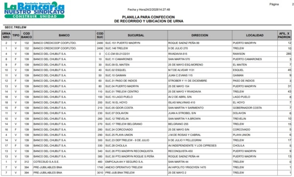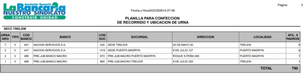 3º) LA localización de la totalidad de las urnas fijas y el recorrido de las urnas volantes será publicado íntegramente en el diario de mayor circulación de la provincia de Chubut de fecha 02 de marzo de 2026, dicha publicación forma parte de la precedente convocatoria y estará expuesto en la Junta Electoral Seccional,