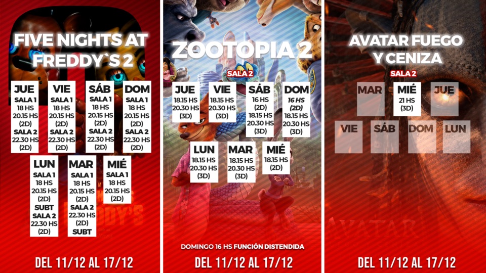 • 21:00 hs – PRE-ESTRENO: AVATAR: FUEGO Y CENIZAS (3D Castellano) (Con nuevo precio: $13.000)